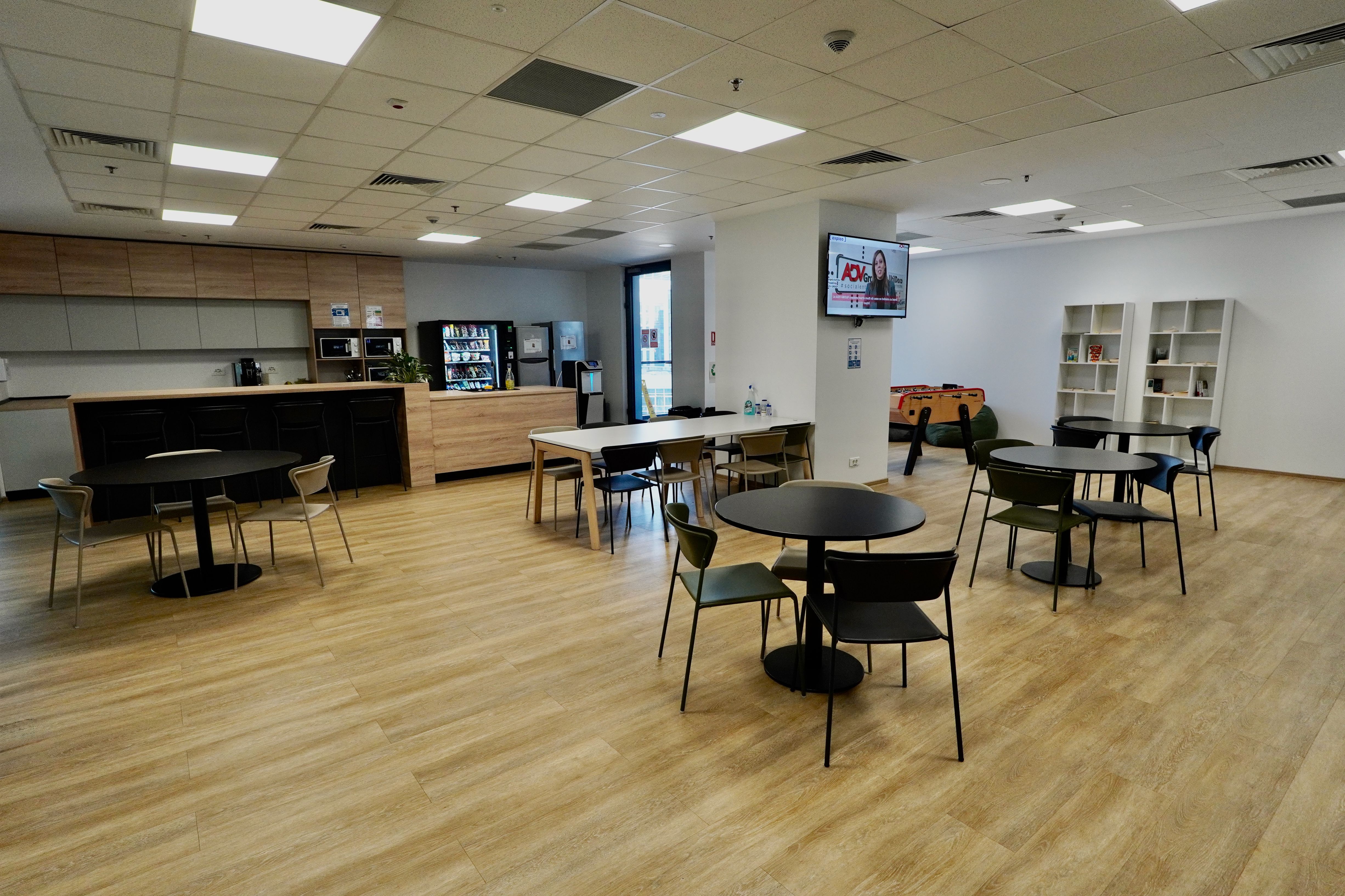 • Parterul clădirii găzduiește Tucano Coffee, Vivo Burger, King Rolls și alte opțiuni de dining