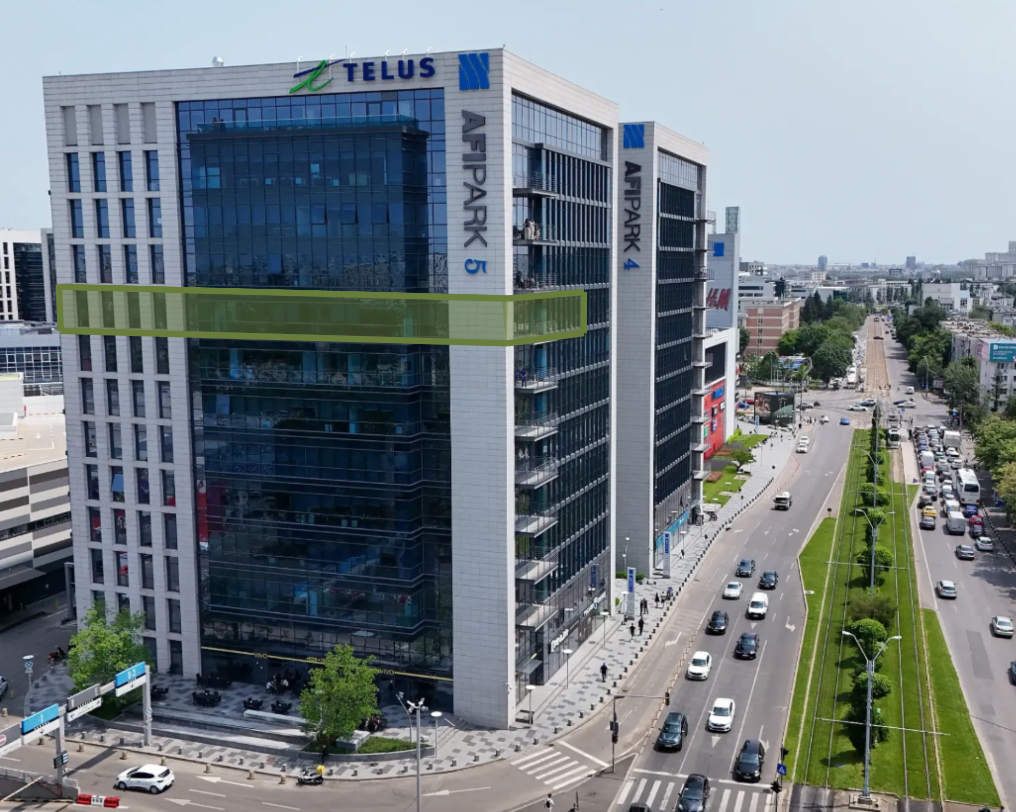 "Spațiul situat la etajul 7 din 10, cu lumină naturală excelentă și vedere neobstrucționată."